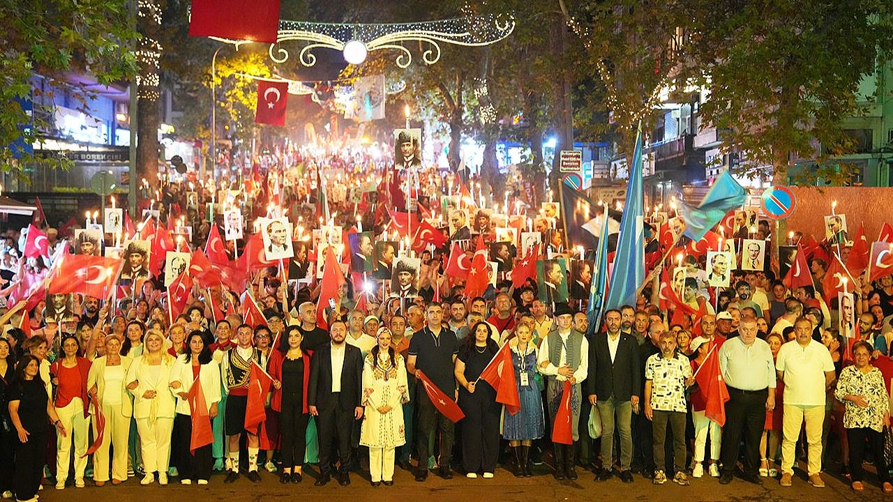 30 Ağustos 1922’de Dumlupınar’da Başkomutan Gazi Mustafa Kemal Paşa’nın önderliğinde zaferle sonuçlanan Büyük Taarruz’un 103. yıl kutlamaları, akşam saatlerinde düzenlenen fener alayıyla başladı. Yüzlerce kişinin ellerinde bayraklar ve meşalelerle yürüdüğü kortej, Kartallı Kazım Meydanı’ndan Kartal Meydanı’na marşlar eşliğinde ilerledi.